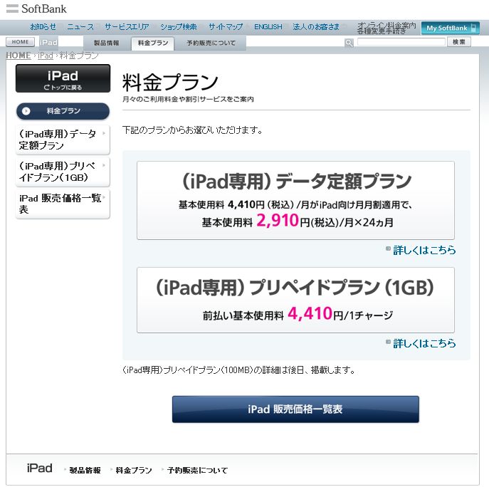 iPadにはデータ定額プランとプリペイドプランの二つが用意されています。まずは今回新しく導入されたプリペイドプランから見ていくことにしましょう。
