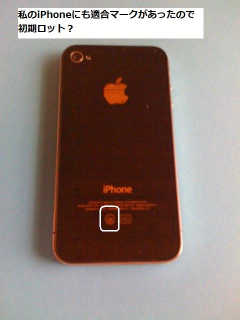 Livedoorニュースの記事よると無線携帯端末の適合マーク(上の写真)が裏面にあるiPhone4は初期ロットなのだそうです。