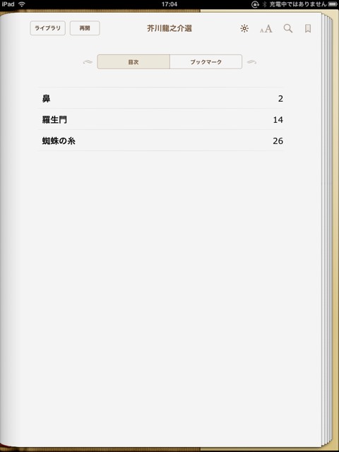 目次で羅生門をタップすると本文が現れます。
