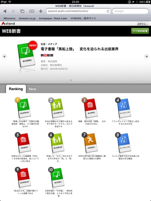朝日新聞のWEB新書AstandがiPad・iPhoneに対応。毎日新聞傘下の雑誌も参加