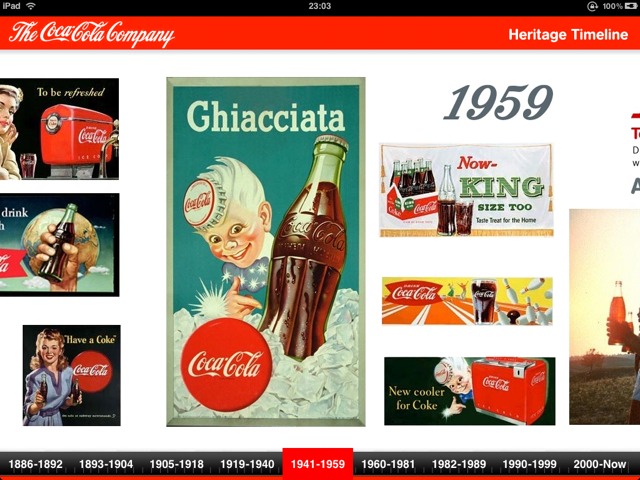 それとは関係ないのですが、今回紹介するのはコカコーラの年代記アプリです。