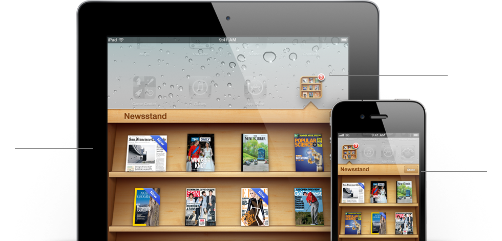 ⇒Newsstandは、美しく、簡単に整理できる書棚で、定期購読中のすべての新聞や雑誌のカバーを一カ所に表示します。App Store™の新しいセクションには定期購読用のタイトルだけが集められ、世界で最も人気のある新聞や雑誌を素早Newsstandく探すことができます。定期購読している新聞や雑誌の最新号がNewsstandに表示され、自動的にバックグラウンドでアップデートされるため、常に最新号と最も新しいカバーアートを手にすることができます。