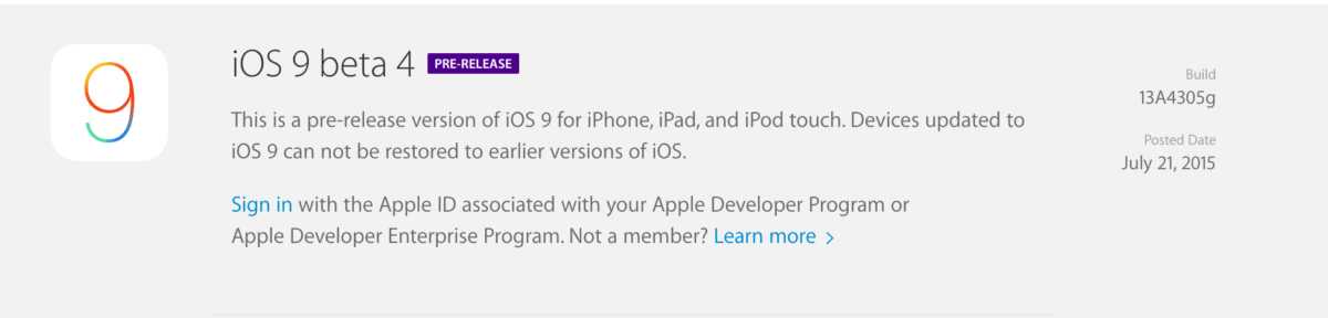 Appleが、iOS 9 beta 4[Build:13A4305g]を開発者に公開しています。
