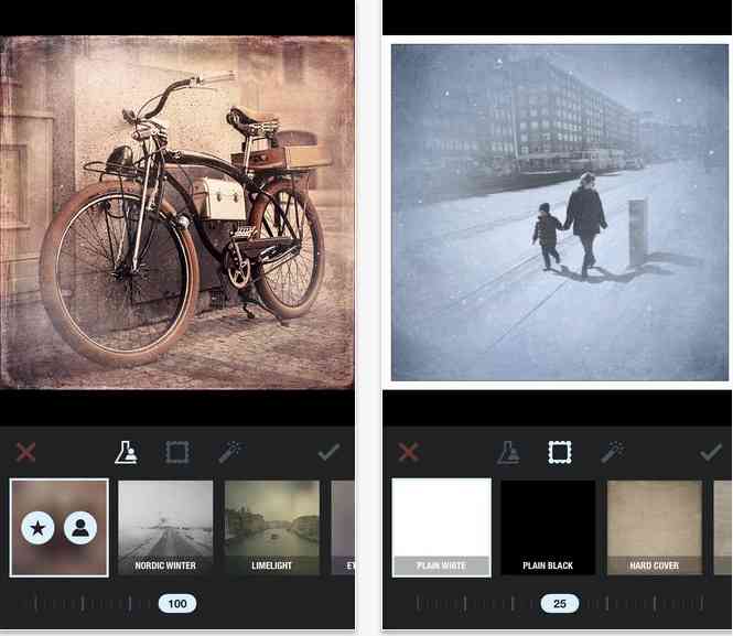 『App Storeで同じようなものは手に入られない沢山のカスタムやマルチレイヤーフォトエフェクト があります。例えば基本的な色や本物の年代物フィルムに匹敵する色調、テクスチャー加工や絵画調および芸術家調のものまであります。モバイル写真コミュニティーの何人かの最も才能ある方々が科学的正確性を元に作り上げているため、これらのエフェクトは嘘偽りなく”定型処理”の賞賛を受けるに値します。
