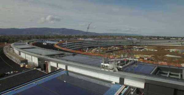 Apple Campus 2の建設風景を近くから撮影した空撮動画