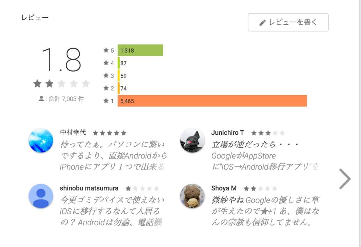 否定的なレビューが、圧倒的に多く、Google Playでの公開がAndroidユーザーの怒りを買っているようです。逆の立場だったら、AppleはApp Storeでの公開を認めない可能が大きいですからね。(^^ゞ