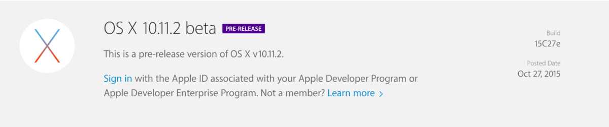 Appleが、OS X 10.11.2 El Capitan beta 1[build:15C27e]を開発者を公開しました。