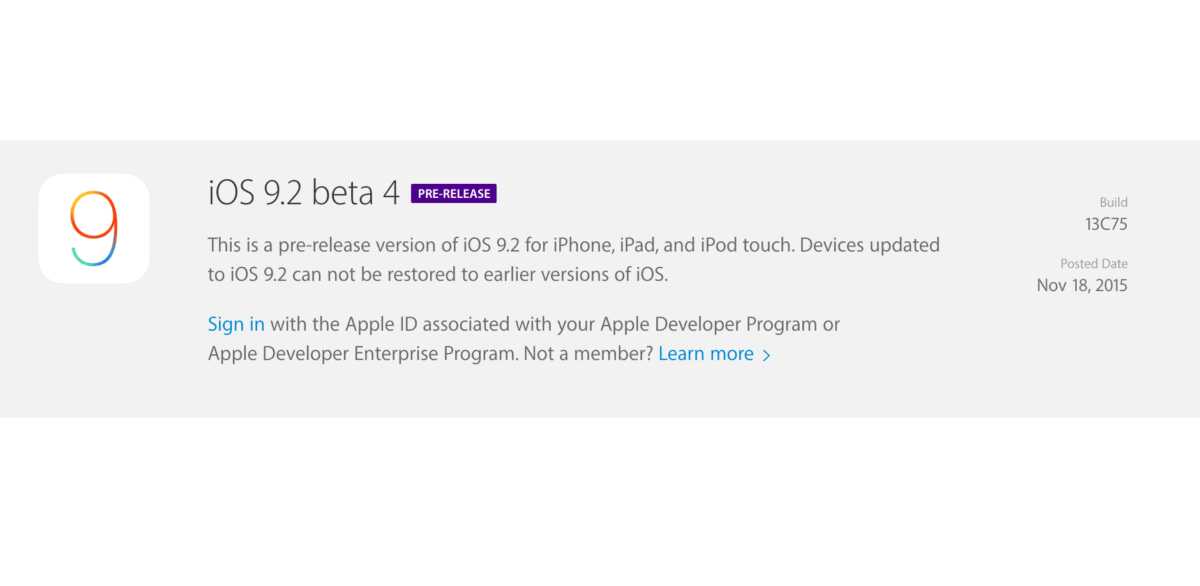 Appleが、iOS 9.2 beta 4[build:13C75]を開発者に公開しています。前回のbeta 3[build:13C71]の公開は11月11日でした。