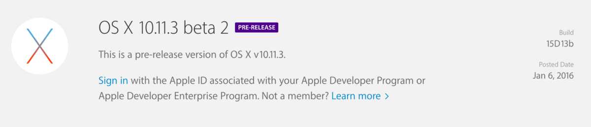 Appleが、OS X 10.11.3 beta 2[build:15D13b]を開発者及びパブリックベータプログラム登録者に公開しています。