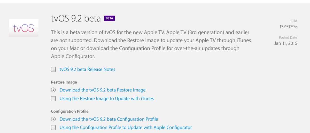 Appleが、tvOS 9.2 beta 1[build:13Y5179e]を開発者に公開しています。