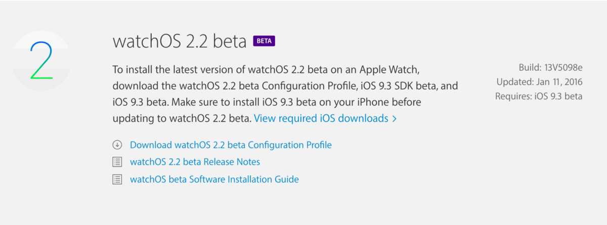 Appleが、watchOS 2.2 beta 1[build:13V5098e]を開発者に公開しています。