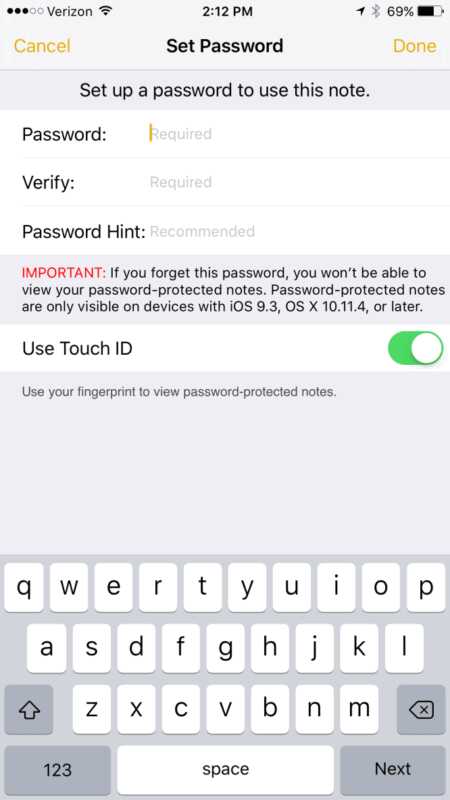 ・ノートアプリでパスワード(Touch ID)機能