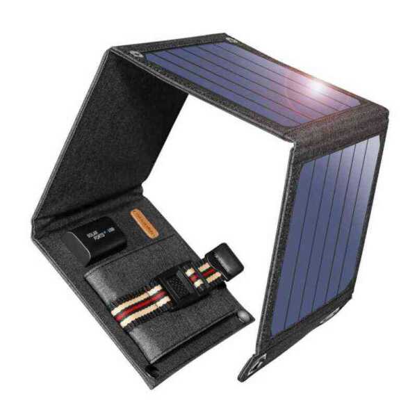 10400mAh モバイルバッテリー 折り畳み式 充電スタンド バッテリー USBモバイル充電器 スマホ/タブレット充電器 デュアルUSB出力 LEDライト付き アウトドア キャンプ (黒) [並行輸入品]