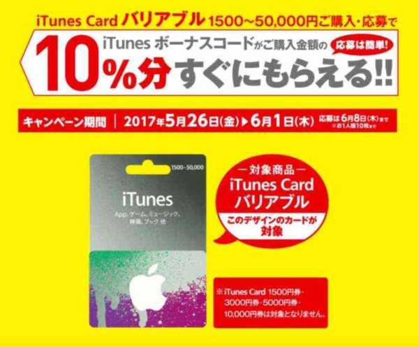 対象はソフトバンクショップ・ワイモバイルショップで1,500円、3,000円、5,000円、10,000円の「App Store & iTunes ギフトカード 」です。