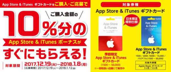 【App Store & iTunes ギフトカード バリアブル購入で10%分のボーナスプレゼント】ローソン、セブンイレブン、ファミリーマートほかの主要コンビニで、期間は8月19日まで