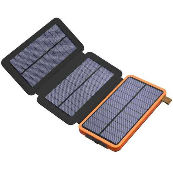 【最新版】 ソーラーチャージャー モバイルバッテリー 10000mAh LEDライト付き 2USB出力ポート 折りたたみ式 4枚ソーラーパネル パネル分離可能 携帯充電器 太陽光で充電可能 持ち運び便利 耐衝撃 地震/災害/旅行/出張/アウトドア活動などの必携品 iPhone/iPad/Android各種対応