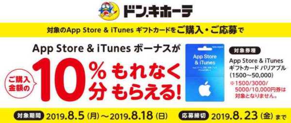 【App Store & iTunes ギフトカードの10%増量額】