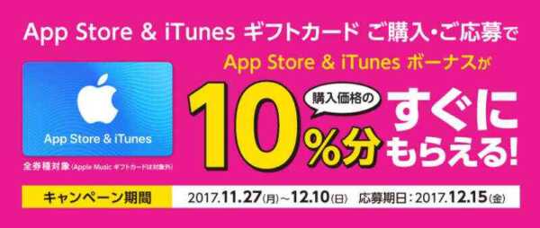 【App Store & iTunes ギフトカードの10%割引額等】